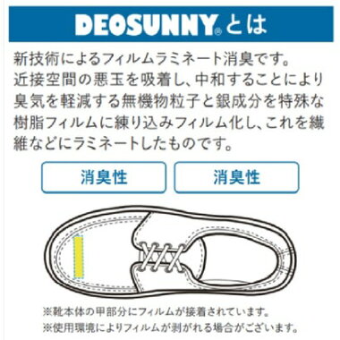 また、インソールには消臭・抗菌効果のある「デオサニー」を搭載し、足汗による不快な臭いを軽減し、靴内の菌の繁殖を抑えます。